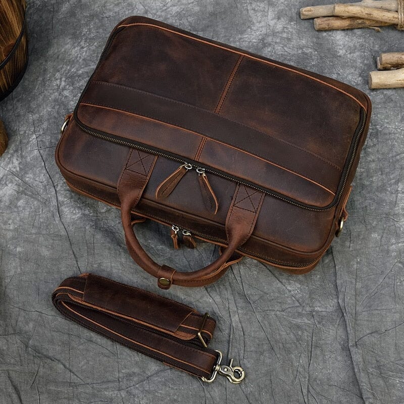 Feita com couro de alta qualidade, essa pasta executiva masculina exala sofisticação em cada detalhe, tornando-a o acessório perfeito para carregar seus documentos e dispositivos eletrônicos com estilo